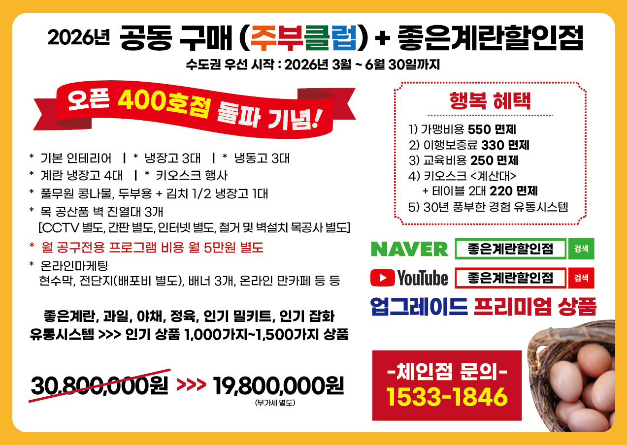 좋은계란 할인점에서 창업점주님을 모십니다.